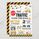 The invitation features cute construction invitations. Red, yellow and black colours bring playfulness to the design.