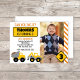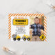 Party Under Construction! This construction party invitation features construction trucks, road signs, and a photo of the guest of honour.