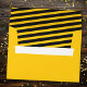 Celebrate your little one's special day with this custom boy birthday party invitation envelope with an adorable construction theme. The invitation has yellow and black stripes and is surrounded by yellow.