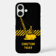 Silhouette of construction crane. Vector icon with customizable colour. Custom text.