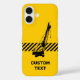 Silhouette of construction crane. Vector icon with customizable colour. Custom text.