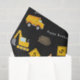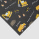 Celebrate your little one's special day with this custom boy tissue paper with an adorable construction theme. The gift wrap tissue paper has a pattern of a dump truck and excavator working together at a road construction site. There are also orange traffic cones, dirt piles, and a safety divider with yellow and black stripes. Add your Happy Birthday greeting and your child's name and age for a special touch!