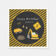 Celebrate your little one's special day with these custom boy paper napkins with an adorable construction theme. Each napkin has a dump truck and excavator working together at a road construction site. There are also orange traffic cones, a safety divider, and yellow and black stripes. Add your child's name and age for a special touch!