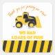 These square stickers with rounded corners compliments the Construction Birthday Party Invitation. Send your guests home with a small gift labelled with this cute sticker to round out the construction theme!