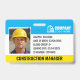 Construction ID badge with fully customizable text and scannable QR code. Branded photo badges give added security on a construction site or as identification at a trade show. This modern template includes your company logo, name, employee details, barcode and contact details. All the text can be customized so you can include the information you want. Ideal for a wide range of businesses, including residential and commercial construction, management, general contractors, building contracting and design-build construction. Printed colours: blue, black, yellow and white. Blue is a popular colour for construction companies as it gives a feeling of reliability and trust. Shop the collection for more popular product ideas and supplies for sale online, designed for the construction industry.