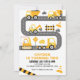 Construction Truck Birthday Party with dump truck, crane, caution signs and orange cones.