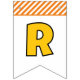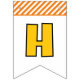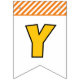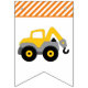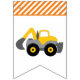 Orange and Yellow construction birthday bunting featuring construction trucks and bold, yellow text.