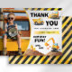 Thank your guests for joining the crew! 🚧✨ Featuring watercolor construction trucks, this thank you card is perfect for showing appreciation after your little builder's celebration. Personalize with your own message for an extra special touch. #ConstructionBirthday #ConstructionThankYouCard #ConstructionTruckThankYou 🚜🎉