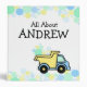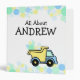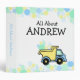 Dump truck and High lift and fun coloured confetti dots of baby blue, green and yellow. A binder that you can personalize and fill with your child's documents, artwork, photos and more.