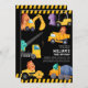 Construction trucks birthday party invitation with dinosaurs! The crane has a place for your child's age! We used a distressed font to fit the theme perfectly. Add your child's name and age as well as party details. Family and friends will love this super cute invite! See coordinating items in our shop, Enchanted Finch.