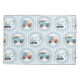 Cute construction equipment with a little boy in mind. Blue and white stripes with mint turquoise and orange accents.