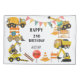 This design features four classic construction trucks in bold yellow arranged together on a brown and black background. It includes other construction items like guard rails and traffic cones and black and yellow traffic stripes. We have you covered for a construction trucks themed party: supplies, decor, delicious treats and meaningful personalized gifts!