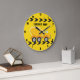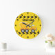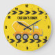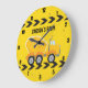Cool custom construction concrete mixer party wall clock for a child who loves yellow construction vehicles in black and yellow. Fun vehicle bedroom decor for a little boy who loves cars and trucks. Customize with your kid's name under the black and yellow caution tape for a boys room.