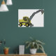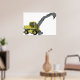 A green construction vehicle with a digger arm extended. This design looks really effective on these Poster