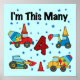Colourful construction vehicles including a bulldozer, front end loader, and cement mixers on Construction Vehicles 4th Birthday T-shirts, cards, stickers, tote bags, magnets, keepsakes, and more.