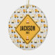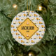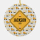 This ornament features a dump truck and front loader pattern with a place to personalize a construction sign with your child's name and anything else you'd like it to say. You can also customize the background colour as well as fonts. This ornament is sure to be a treasured keepsake.