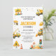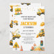 Invite friends and family to join in the celebration with our beautiful Invitation in theme Construction Vehicles. Invitation for your boy.