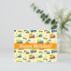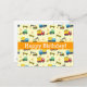Si le garçon d'anniversaire aime les véhicules et les machines à thème de construction, il sera ravi de recevoir cette joyeuse carte postale d'anniversaire. Il est livré avec un motif à thème de véhicules de construction qui est créé en utilisant des éléments de construction comme un camion à benne rouge et jaune transportant les débris, une pelle orange, une chargeuse verte avant poussant la saleté, un mélangeur de béton bleu et jaune, des cônes orange et blanc et des barrières de zone de construction jaune et noir.