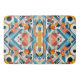 A bathmat with a modern, contemporary type of look with colours and shapes.