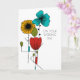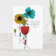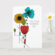 Create a custom card to celebrate a special couple. This wedding card can be customized with your own message on the inside. It features a floral illustration inspired by Art Nouveau design in black, bright turquoise blue, red, light green and golden yellow. Your custom text is in a clean sans serif font.