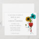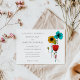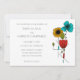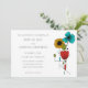 This customizable wedding invitation has a clean and modern look. It features a floral illustration inspired by Art Nouveau design in black, bright turquoise blue, red, light green and golden yellow. Your custom text is in a clean sans serif font.