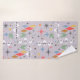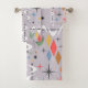 Contemporary atomic and abstract and lines, purple bath towel set.