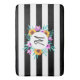 Modern bath mat with floral watercolor wreath on black & white striped background. Customize the monogram by choosing from many wonderful fonts.