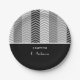 Contemporary Black White Chevron Stripes and Name Paper Plate
