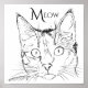 This poster features a whimsical line-drawn black and white sketch of a cat, with the word Meow at the top.
