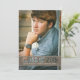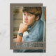 Modern style with cutout typography allows your photo to become part of the design. Neutral mocha brown band also features your son's name and school. On the back, customize your graduation party or announcement information.