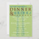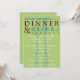 Dinner party invitation with large, faded fork and knife on a bright green background. Large, contemporary text in maroon and blue fills the invitation header from edge to edge, and invites your guests to get together for dinner and drinks. Customize with your party's information. Choose your own paper, font, size and colour.