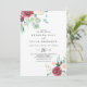 This contemporary eucalyptus floral casual wedding invitation is perfect for a modern wedding. The design features watercolor purple, blush, bordo and burgundy delightful peonies with green eucalyptus leaves, inspiring artistic beauty.