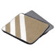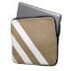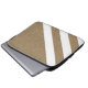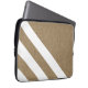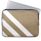 Modern laptop sleeve with faux burlap texture and white stripes design.