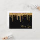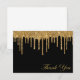 Contemporary black thank you note says Thank You in gold glitter and has gold sparkling glitter dripping down across the top. You can customize the reverse side background colour to match your event or just for fun!