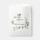 These elegant eucalyptus wedding favour bags are the perfect way to present your guests with a small token of appreciation. The design features hand-painted eucalyptus leaves in sage, mint, and tea greens, arranged in a geometric pattern against a blank background. The bold contemporary font adds a touch of sophistication, while the clean lines and minimalist design make them perfect for any modern wedding.