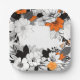 Contemporary monochrome orange flowers wedding paper plate