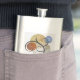 The product is a good size and came exactly as it was pictured.  The lid is not attached to the flask, which could be dangerous on drunken nights... The print came out surprisingly well and looks very sharp.  Would definitely recommend.