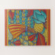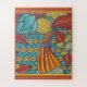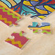 Contemporary Puzzle with pattern in red, gold, blues. Great for puzzle lovers, rainy day activities, gifting and more.