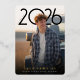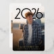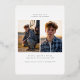 This modern graduation announcement template features a full-bleed portrait on the front with bold, oversized “Class of” typography layered over the image for a clean, editorial-style look. The design places the graduate’s photo front and center, complemented by space for a customizable name and school displayed along the bottom for a polished, timeless presentation. The back of the template includes room for two additional photos, perfect for showcasing multiple portraits or candid moments, along with a dedicated layout for graduation party details. With its minimalist styling, strong typography, and photo-forward design, this versatile template works beautifully for both high school and college graduates and doubles as a keepsake announcement and celebration invitation.