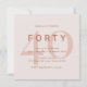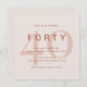 This modern typography 40th birthday party invitation is perfect for a modern birthday party. The simple design features rose pink accents in a typographic layout with a modern feel. Customisable in any colour. Keep the design minimal and elegant, as is, or personalise it by adding your own graphics and artwork. For more advanced customisation of this design, e.g. changing layout, font or text size please click the "CUSTOMIZE" button above. Please contact me for any questions!