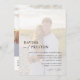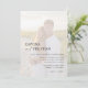 Photo wedding invitation featuring your names in elegant serif bold font with "and" and "reception to follow" in modern handwritten script lettering. Personalize with your wedding details beneath. On the back of the card you can find space for QR CODE wedding website and a room for an extra message.