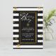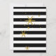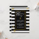 Stylish, modern holiday invitation done in a black and white horizontal stripe pattern. Graphics of gold looking snowflakes decorate the background, and a gold edged black text area has white text reading Happy Holidays, in a typography style. Personalize the white text for your holiday party. Matching products are available.