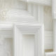 Modern white on white, various size shadowbox frames with a spattering of abstract florals.. unique 3d effect perfect for the modern entry, business lobby or office space