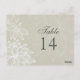Graphic flowers outlined in white against a soft taupe make a beautiful statement on this double-sided table card. A sentimental look for a special day. Design is duplicated on both sides so that the table number can be seen however its placed on the table. Available in alternate colours with matching products.