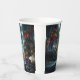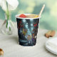 This paper cup design puts you right in the middle of the action. Feel the thrill as you view Scooby and Shaggy's wild ride on a cursed conveyor belt, their faces a mix of fright and frantic energy. Haunted teddy bears with vividly glowing red eyes float around them, adding to the danger. In the background, the contrasting scene of Velma and Fred's focused investigation of a blueprint offers a moment of intellectual puzzle-solving. Daphne's stand against a throng of eerie possessed dolls, illuminated by her flashlight beam, completes this exciting and spooky design. The cup captures the essence of a classic Scooby-Doo chase scene.