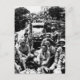 Convoy moving its way down a crowded street. Smiling nurses in uniform riding on flatbed trucks. VIntage WWII photography.