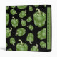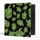 Modern cookbook binder for organizing your family's recipes, meal planning or other subject. Features a fun green bell pepper pattern on a black background. Customizable text is presented on coordinating black and green banners.