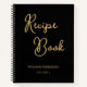 Girly Elegant Minimalist Black and Gold Monogram Name Custom Personalized „Recipe Book” Script Notebook. These design featuring text: „Recipe Book” in a huge hand lettered font script typography, your full name on black and gold. These are easy to customize and can be used as a Recipe Planner, Recipe Journal, Cookbook and more. Also great stylish for a house warming gift to first home owners, for birthday, mother’s day, wedding, bridal shower and for anyone who loves glam, elegant style.