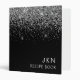 Cookbook Recipe Book Silver Black Glitter Monogram Binder