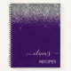 Cookbook Recipe Silver Purple Glitter Monogram Notebook